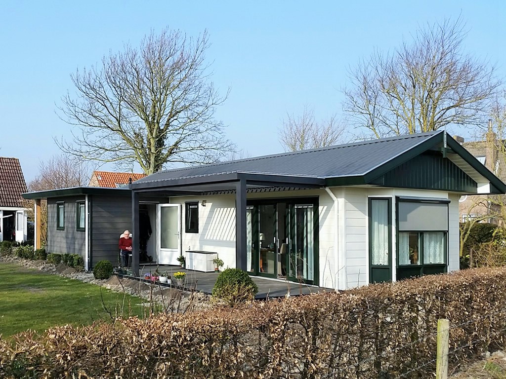 Op de rand van Westkapelle hebben we deze prachtige mantelzorgwoning mogen plaatsen. Deze mantelzorgwoning heeft een L-vorm, uitgevoerd met een erker en een luifel t.p.v. de schuifpui, maar ook bij de entree. De woning is zo ontworpen dat het erker uitkijkt over het weidse landschap, wat een uitzicht!